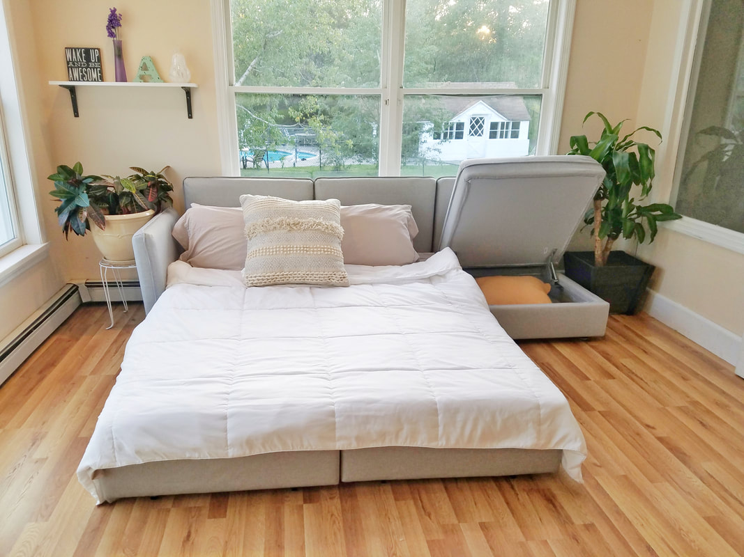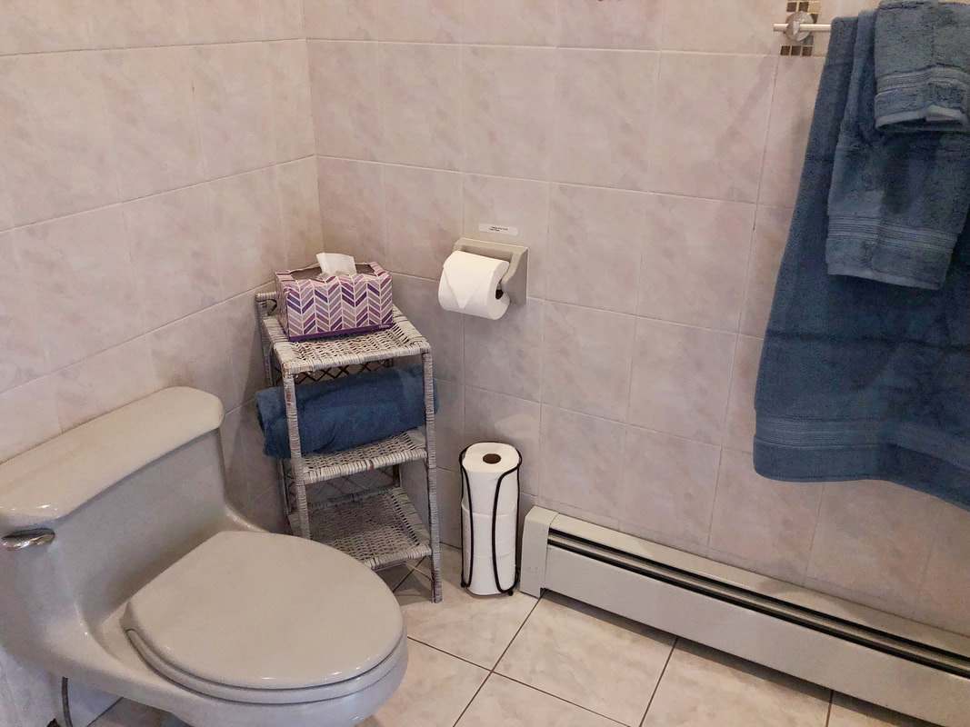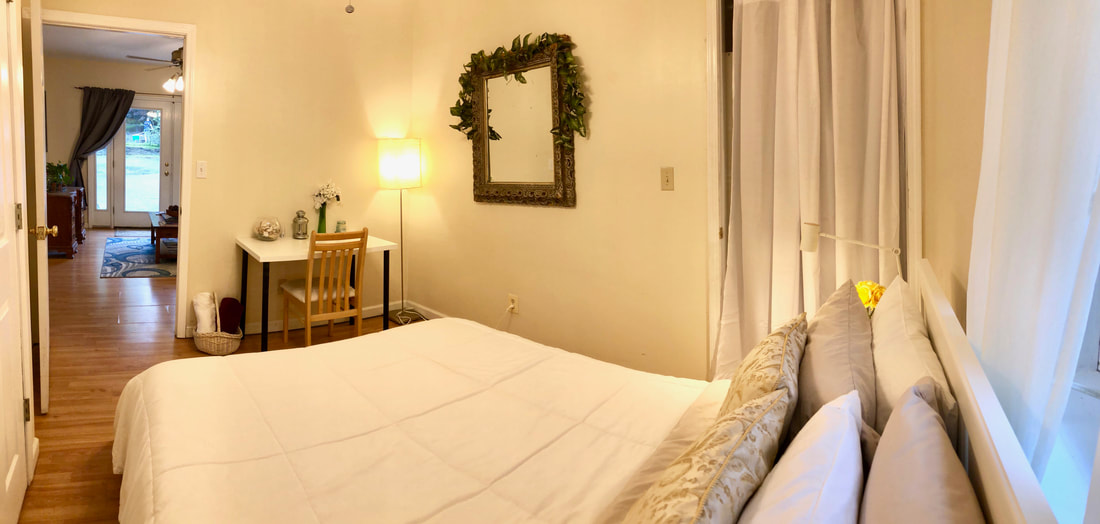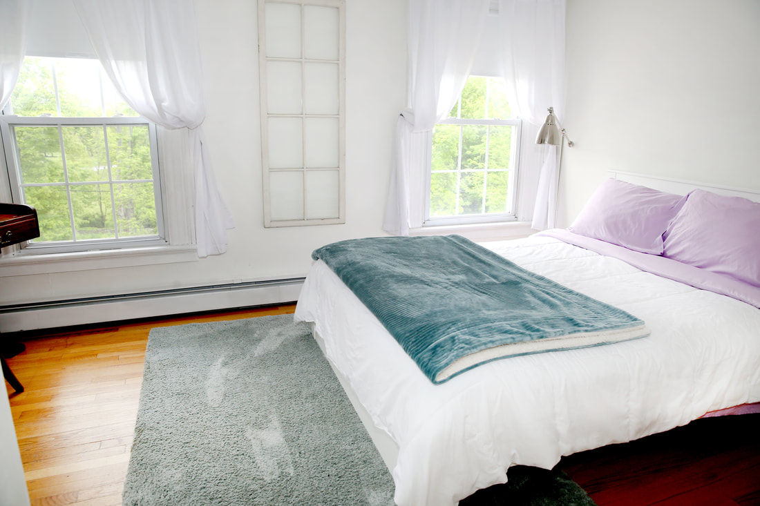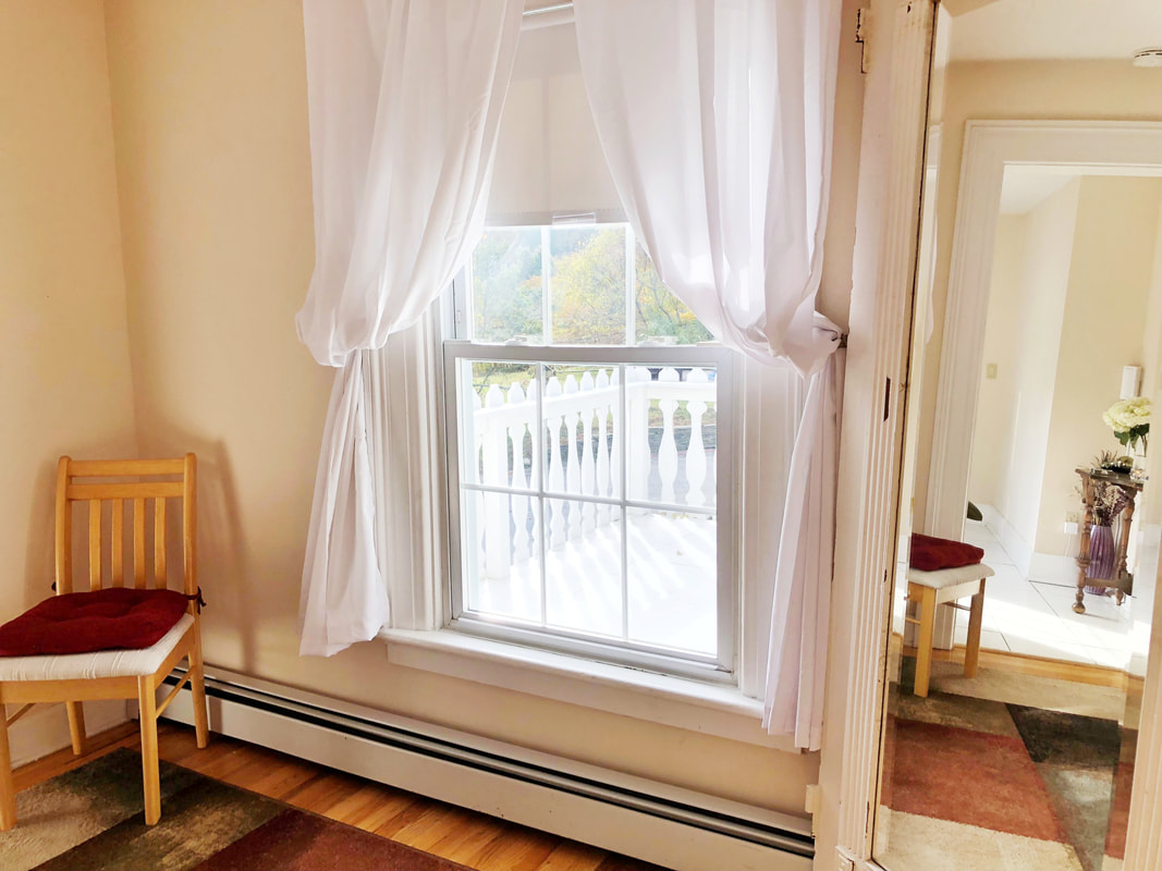 Comfort is King! Guests tell us the king bed in our master is the most comfortable they have ever slept in. Relax, unwind, and get a great night’s sleep. Early riser? Watch the sunrise over the lush mountains of Harriman State Park without ever leaving your bed. Or, watch the sun go out with a blaze of color and glory in the western sky. The large screen TV over the fireplace has all the most popular channels. The Master features its own deck and two sets of doors that turn the master bedroom into a master suite.