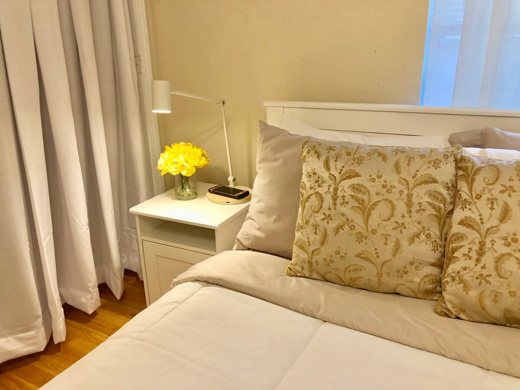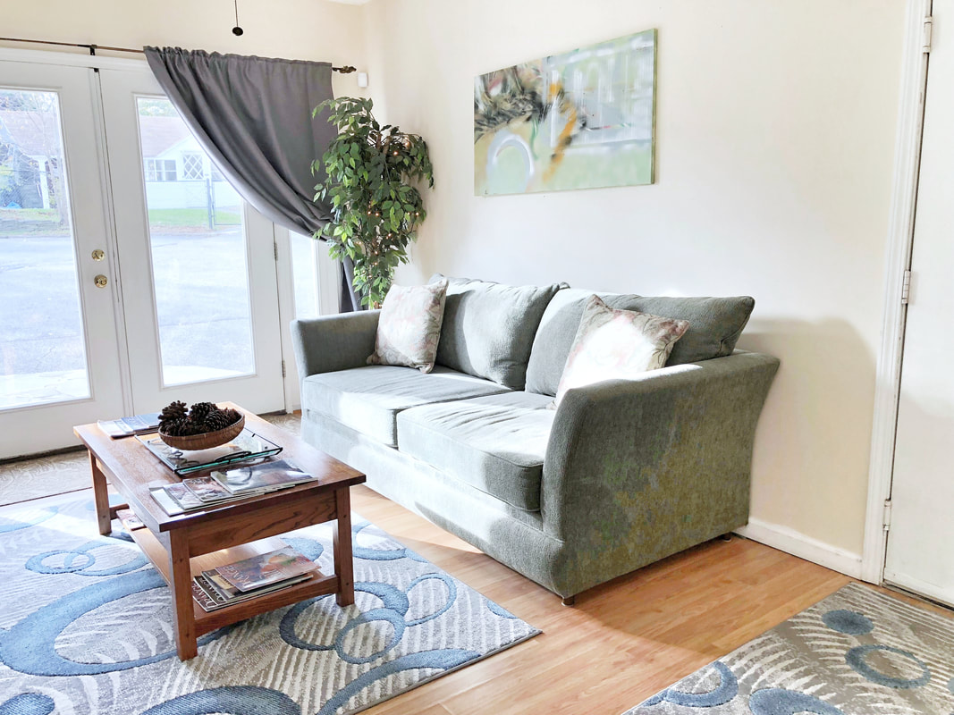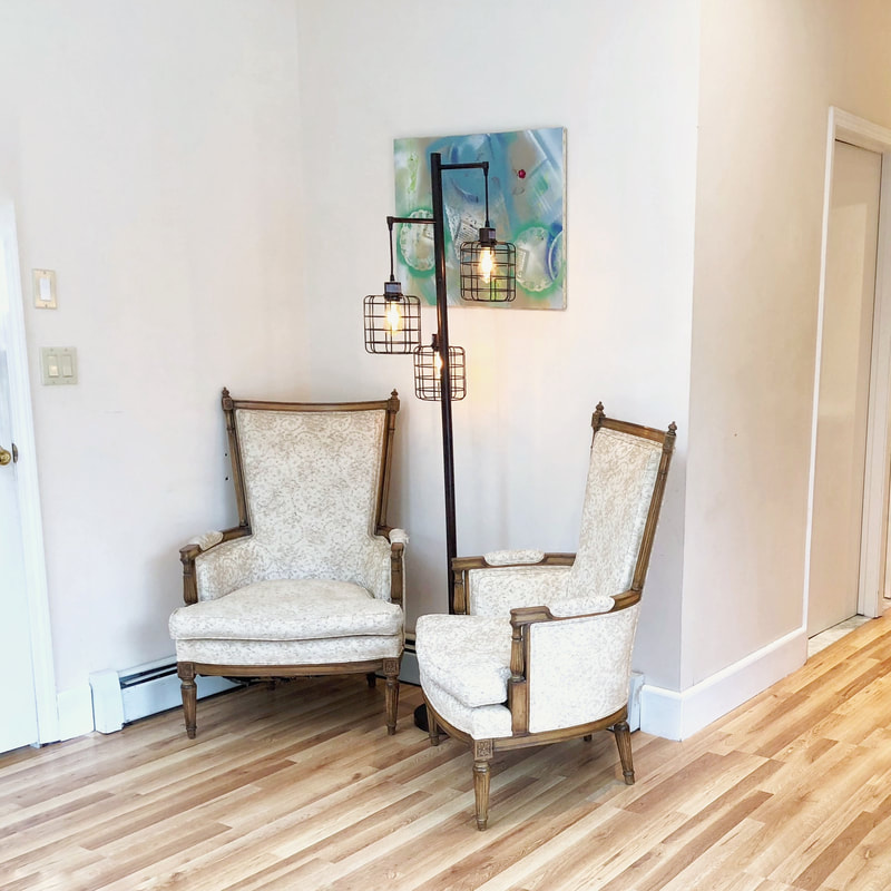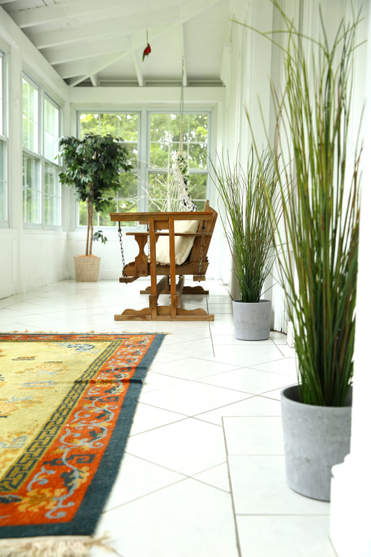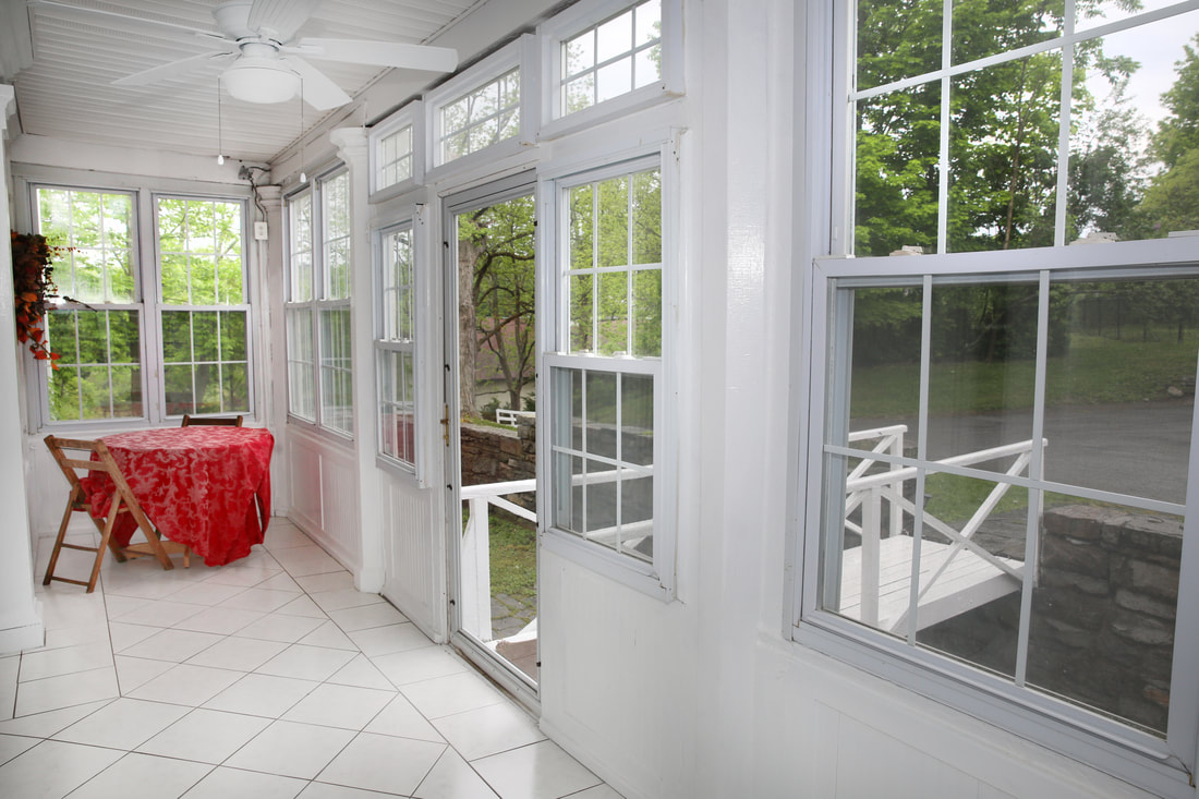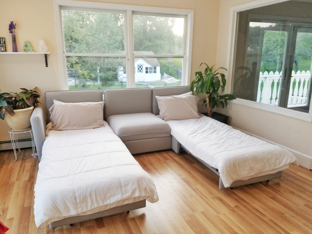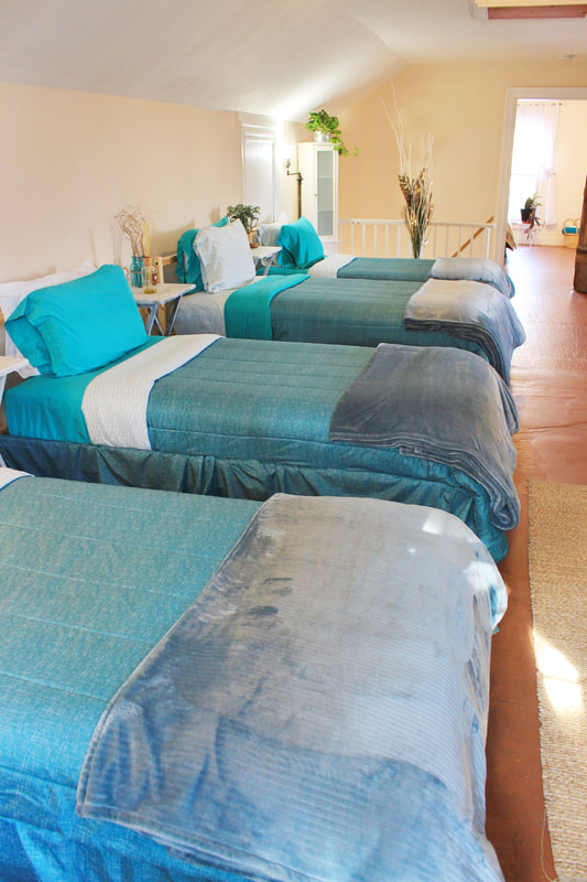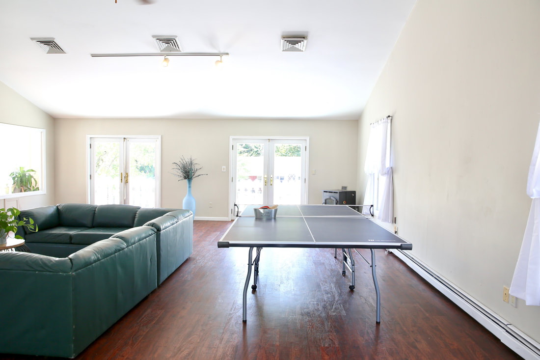 Guests, gatherings, and groups alike love our grand living room. Sun-streaked and bright during the day, cozy and intimate at night, the living room is a perfect blend of old-world and high-tech. The wide-board pine wood floors & ornate handmade moldings are over 160 years old. There’s a wood-burning stove for warmth and ambiance, and a 100-year-old baby grand piano for live music. A large TV, tons of premium channels for the latest movies or sports, an Xbox, and more.