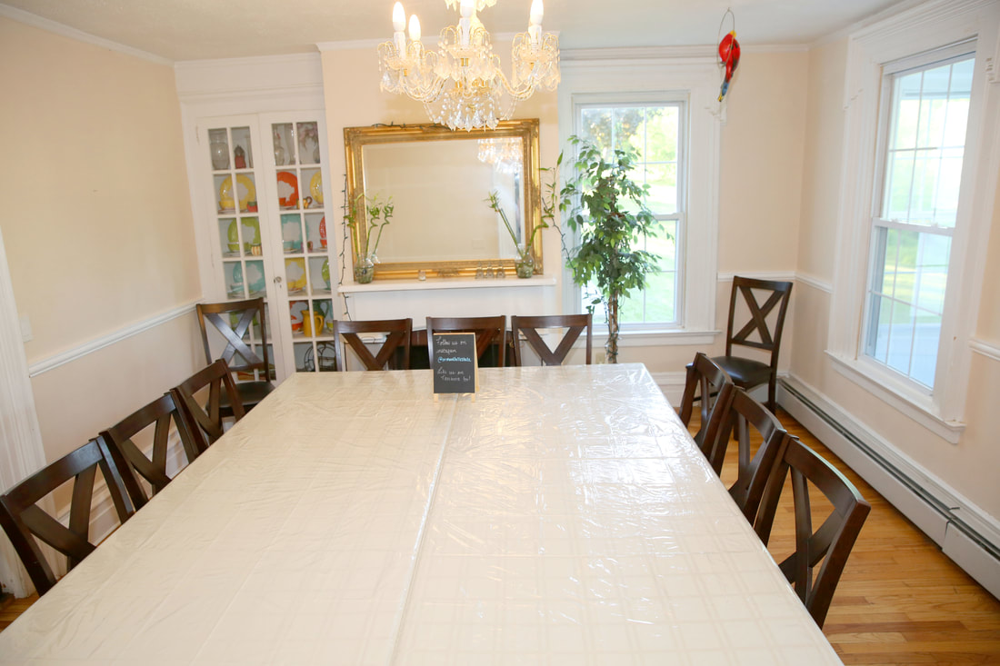 Guests, gatherings, and groups alike love our grand living room. Sun-streaked and bright during the day, cozy and intimate at night, the living room is a perfect blend of old-world charm and high-tech sophistication. The wide-board pine wood floors & ornate handmade moldings are over 160 years old. There’s a wood-burning stove for warmth and ambiance, as well as a 100-year-old baby grand piano for live music. A large TV, tons of premium channels for the latest movies or sports, an Xbox, and more.